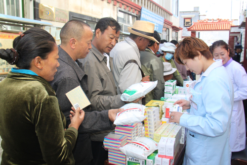 根據(jù)自治區(qū)工商聯(lián)《關(guān)于深化區(qū)直機(jī)關(guān)在職黨員到社區(qū)服務(wù)群眾活動(dòng)》的統(tǒng)一安排:阜康醫(yī)藥有限公司四個(gè)黨支部,在張德才總院長的帶領(lǐng)下,一行8人在2015年8月8日上午到拉薩市城關(guān)區(qū)嘎瑪貢桑社區(qū)進(jìn)行義診活動(dòng),帶著1.5萬余元藥品和便攜式B超,心電圖等。在半天時(shí)間內(nèi)貢義診380余人,為社區(qū)群眾進(jìn)行了測量血壓、發(fā)放藥品、健康咨詢等,受到了社區(qū)群眾的熱烈歡迎。期間正在慰問群眾的自治區(qū)政協(xié)副主席阿沛晉源,和區(qū)統(tǒng)戰(zhàn)部副部長、區(qū)工商聯(lián)黨組副書記李瑞富等領(lǐng)導(dǎo)的高度評價(jià)。