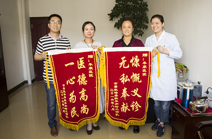 8月8日,為了表彰阜康醫(yī)院對林周縣朱加村和甘曲村人民群眾衛(wèi)生健康意識的提高和衛(wèi)生保健體系的完善所做出的貢獻,市委政法委駐朱加村、甘曲村工作隊特意為阜康醫(yī)院送來錦旗,以示感謝和表彰,阜康醫(yī)院總院長敖德秀同志、阜康醫(yī)院副院長扎西頓珠同志代表阜康醫(yī)院接受了表彰。敖德秀總院長表示,我們阜康醫(yī)院一定會再接再厲把健康帶到西藏的各個村落,為西藏人民的健康事業(yè)做出應(yīng)有的貢獻。
