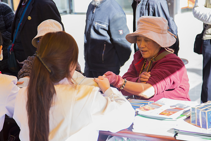 自14日早上九點活動開始,前來阜康醫(yī)藥義診宣傳點測血壓、測血糖、咨詢身體健康問題及安全用藥知識的人便絡繹不絕,整整一上午,阜康醫(yī)藥16名醫(yī)護人員都在一刻不停的忙前忙后,但能夠為廣大藏族同胞及社會群眾服務,大家都絲毫不覺得辛苦,反而發(fā)自內心的感到充實與喜悅。據(jù)活動結束后統(tǒng)計,本次活動西藏阜康醫(yī)藥發(fā)展有限公司免費發(fā)放各類相關資料千余份,免費發(fā)放維生素、鈣片、風濕及心腦類等藥品一萬兩千余元,免費測血壓、血糖、看病等也多達數(shù)百人次。