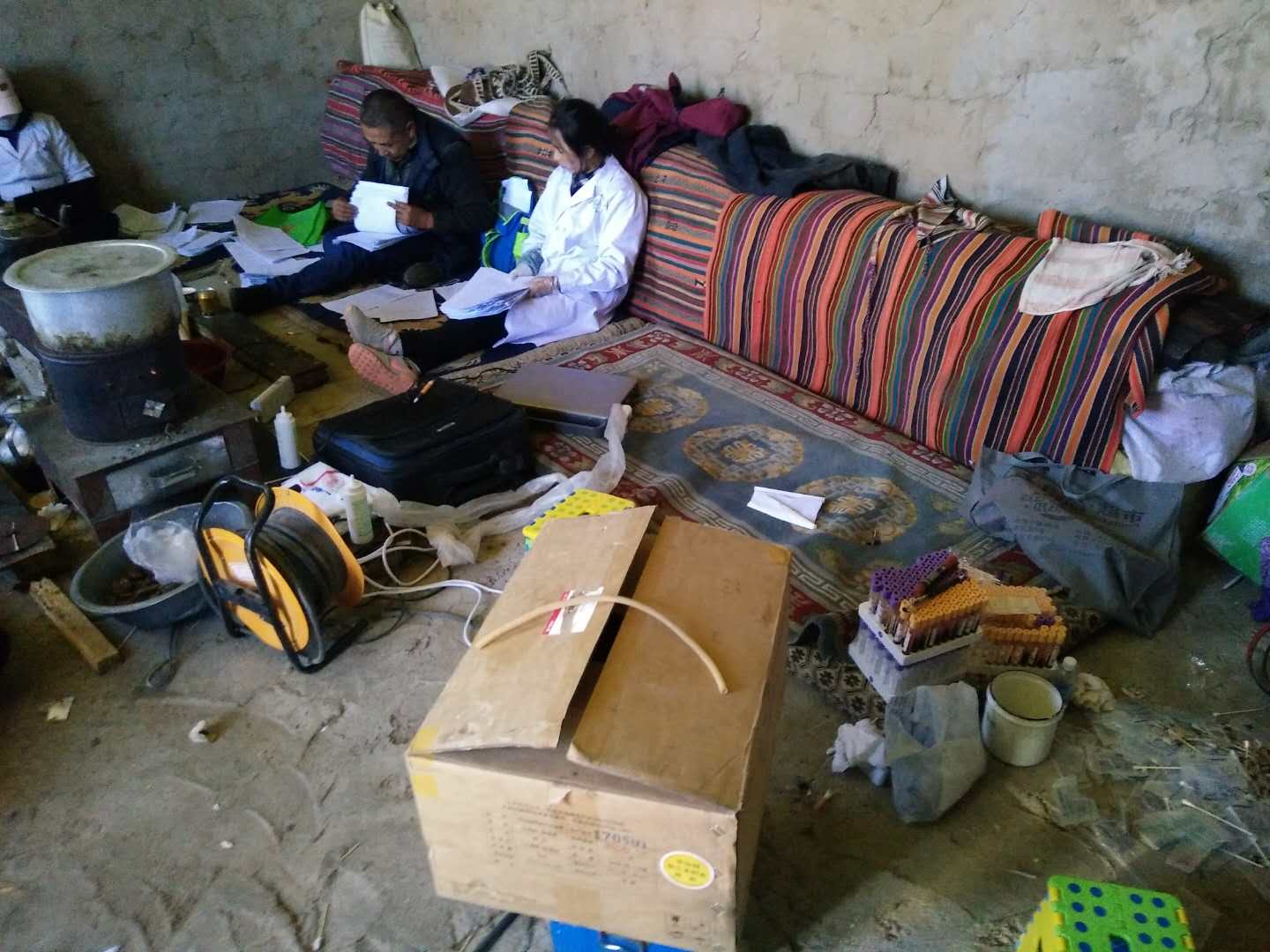10月6日劉冬梅醫(yī)師和劉亞美護士繼續(xù)留在革吉縣篩查,格桑拉吉技師與鐘義華檢驗士一早就前往森布村,為森布村尚未檢查的牧民體檢,在結(jié)束了篩查點的工作后,我院醫(yī)療小分隊針對部分不能到現(xiàn)場的群眾,索性就背上儀器上門檢查。在醫(yī)療小分隊努力工作下,目前革吉縣篩查工作已經(jīng)進入了掃尾階段,篩查人數(shù)也明顯減少,下一步我院醫(yī)療隊將繼續(xù)做好篩查的后續(xù)工作。