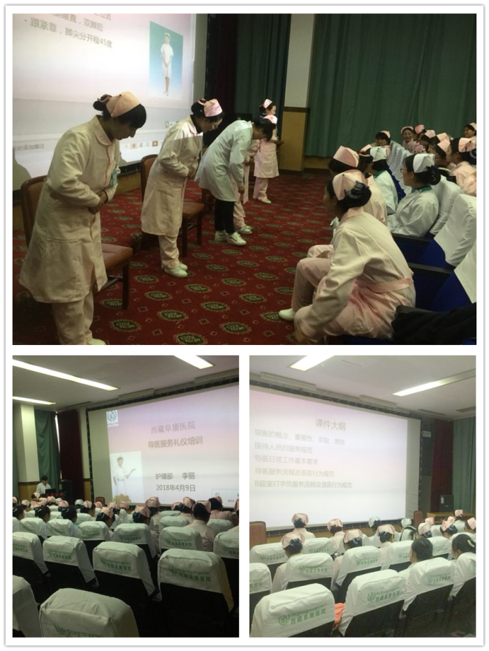 【概要】:2018年4月9日,西藏阜康醫(yī)院、西藏阜康醫(yī)院婦產(chǎn)兒童分院、西藏阜康醫(yī)院心腦血管分院三家醫(yī)院護(hù)理部組織開展了導(dǎo)醫(yī)服務(wù)禮儀培訓(xùn),培訓(xùn)由護(hù)理部主任李麗主講并進(jìn)行了現(xiàn)場指導(dǎo)與考核,旨在規(guī)范服務(wù)禮儀,提高服務(wù)質(zhì)量。