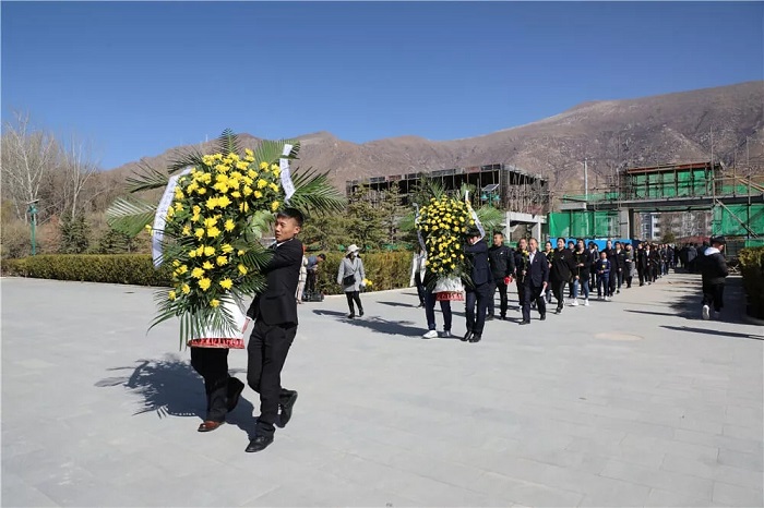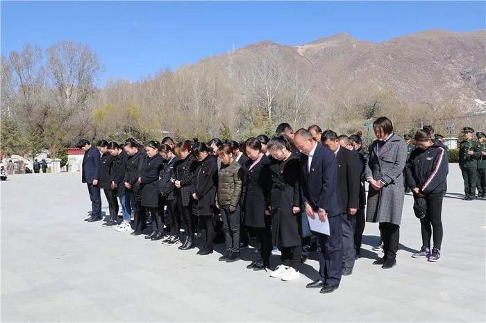 儀式結(jié)束以后,全體黨員整齊肅穆地走過紀(jì)念碑,懷著對革命先烈的崇敬之情瞻仰了烈士陵墓,同時聽取引導(dǎo)人員關(guān)于革命烈士的事跡介紹。在烈士英名墻下,大家仔細瀏覽烈士的名字;在領(lǐng)導(dǎo)干部的楷模孔繁森同志的墓碑前,大家深深鞠躬表達對革命先烈的崇敬與追思;面對一排排長眠的革命烈士,大家深切感受黨的事業(yè)所經(jīng)歷的艱辛與付出的巨大犧牲,深深思考作為一名新時代的中國共產(chǎn)黨員應(yīng)該如何肩負起歷史賦予的使命,在黨中央和區(qū)黨委的堅強領(lǐng)導(dǎo)下,為西藏的穩(wěn)定發(fā)展、為中華民族的偉大復(fù)興貢獻自己的力量,堅決做一名無愧于黨和人民、無愧于時代的合格共產(chǎn)黨員。