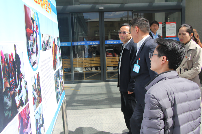 調研組領導觀看我院阿里包蟲病篩查工作匯報展覽板