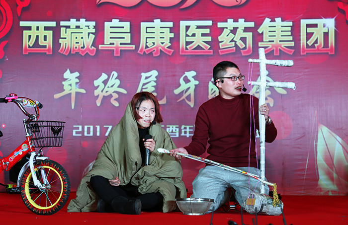 本次晚會還表彰了10年資深員工,他們分別是:扎西央宗、林燕梅、索朗扎西、尼瑪卓嘎;優(yōu)秀員工,他們是:藥房李夢茹、陳冰、邱義貴、達娃、普布德吉,科技公司栗哲民,總公司庫房索朗扎西。讓我們祝福他們并以他們?yōu)榘駱釉趤砟甑墓ぷ髦袏^發(fā)向上,積極進取,實現(xiàn)自我價值,為公司做出更多的貢獻。
