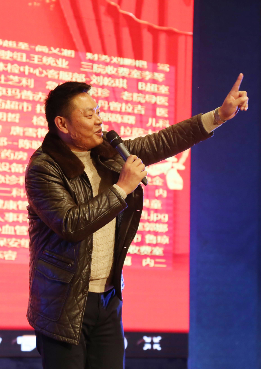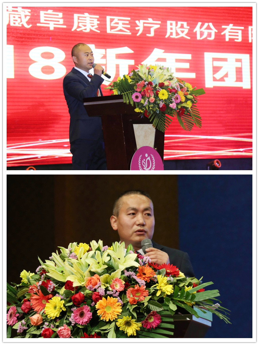 隨后,董事長王斌走上講臺(tái)飽含激情地說“我之存在,因?yàn)橛心?rdquo;,并向所有來賓鞠躬致謝。董事長王斌講述了阜康發(fā)展史、阜康人的奮斗史,從2005年的47名員工到現(xiàn)在的1024名員工,并再次感謝一路伴隨阜康成長的所有人,還指出2018年是阜康發(fā)展史上很關(guān)鍵的一年,要早計(jì)劃、早安排、早部署,要以十九大精神為指導(dǎo),堅(jiān)持科學(xué)發(fā)展觀,早日把阜康建設(shè)成為現(xiàn)代化醫(yī)院。