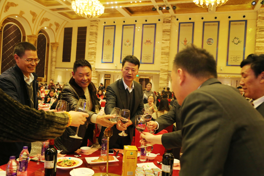 晚宴尾聲,董事長王斌邀請(qǐng)所有院級(jí)領(lǐng)導(dǎo)上臺(tái)共同舉杯說:“希望大家在新的一年繼續(xù)沿著創(chuàng)新的道路團(tuán)結(jié)一致、規(guī)范管理、用心服務(wù),開源節(jié)流地做好自己本職和醫(yī)院的工作。我相信,在各位阜康同仁的共同努力下,2018年我們一定會(huì)保質(zhì)、保量完成工作計(jì)劃。為保障西藏自治區(qū)廣大人民群眾的身體健康做出新的更大的貢獻(xiàn),促進(jìn)醫(yī)院健康、持續(xù)、穩(wěn)步地向前發(fā)展,更上一層樓,再鑄新輝煌! ”