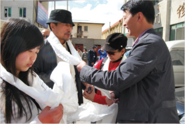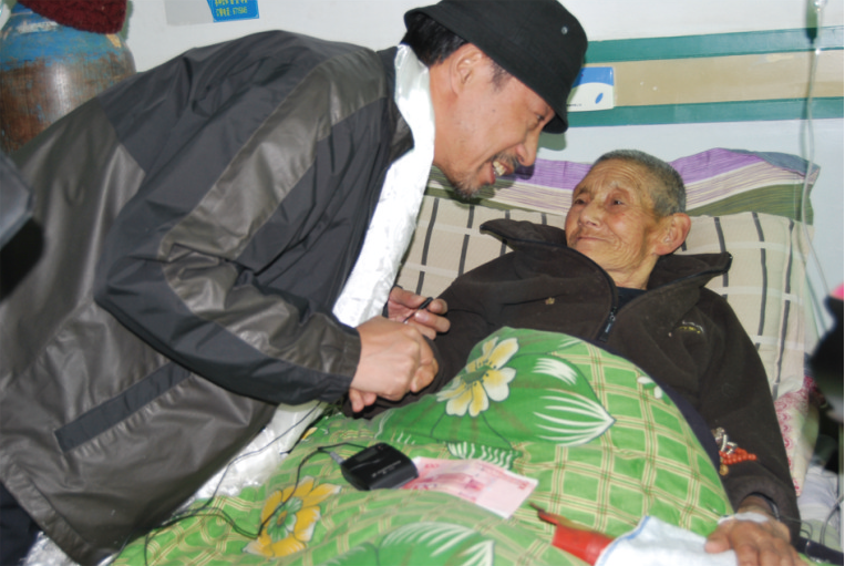 這次感恩之旅最艱難的地方就是大家對西藏高原氣候的極度不適應(yīng)。果然, 到達(dá)了西藏后,孫海英就發(fā)生了嚴(yán)重的高原反應(yīng), 身體虛弱到了極點。同行的工作人員為了防止意外,一度打算取消這次探訪。但孫海英請求大家稍等自己一會。半個小時后,經(jīng)過簡單救治以后,盡管他的不適反應(yīng)并沒有完全消除,但孫海英仍然準(zhǔn)時出現(xiàn)在大家面前。