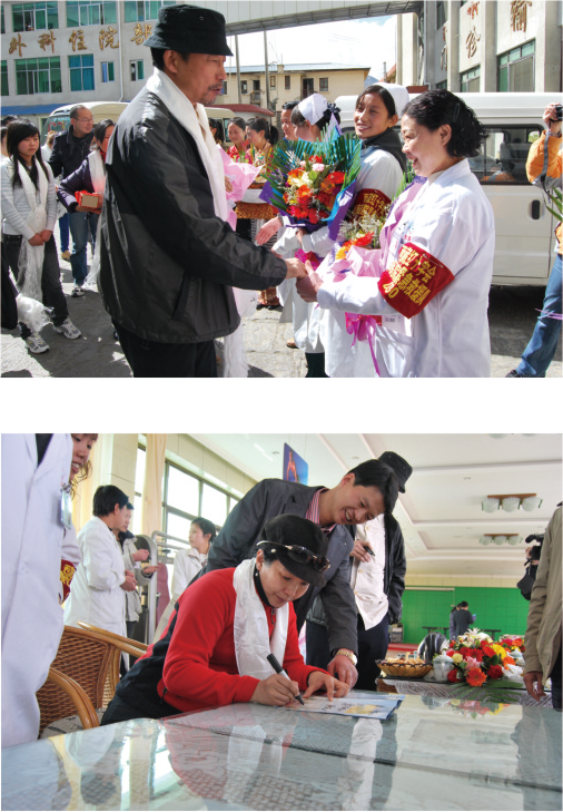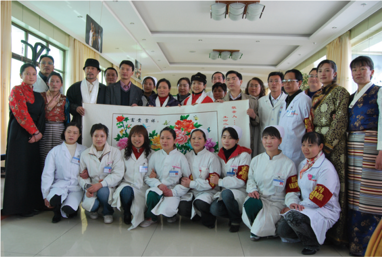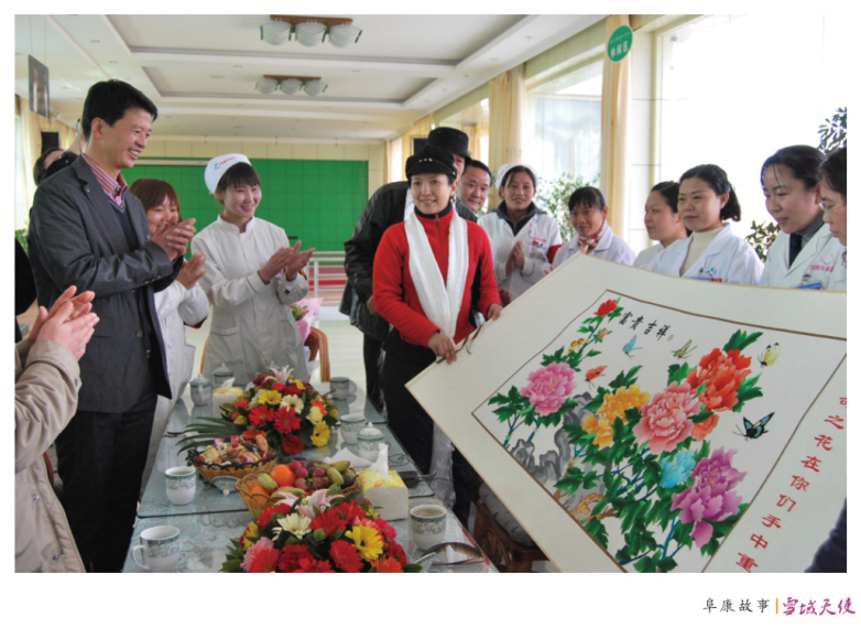 此次的西藏之行,田啟蘭專門代表綿竹人民準(zhǔn)備了一副《富貴吉祥》手工刺繡圖,表達(dá)災(zāi)區(qū)群眾的感激之情。這幅刺繡是田啟蘭和幾名繡女不分晝夜趕制出的。對于田啟蘭來說,這不僅是一次感恩之旅,更是去探望自己“家人”的溫馨之旅。 而孫海英呂麗萍夫婦了解到,阜康醫(yī)院醫(yī)療救援隊醫(yī)療一直在免費(fèi)收治有困難的患者。在探訪時,有一位70多歲的老人就正在接受治療,所有的費(fèi)用都是該公司董事長一個人承擔(dān)。得知這個情況后, 孫海英夫婦當(dāng)即掏出自己隨身攜帶的全部3000多元現(xiàn)金捐獻(xiàn)出來。在了解索珍有身孕在身,孫海英夫婦和田啟蘭又一起買了禮物去看望這位白衣天使。