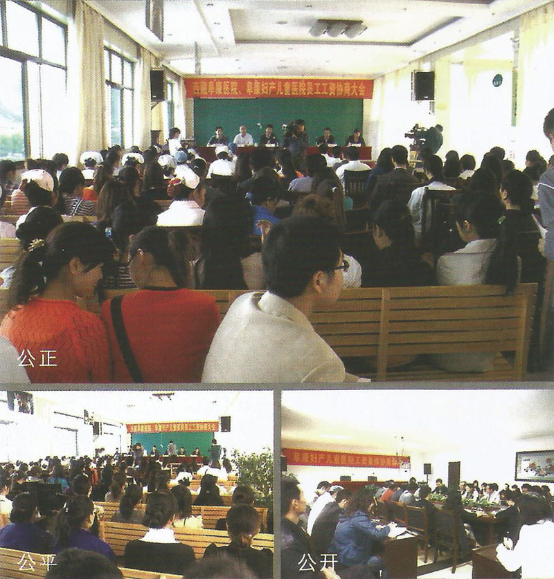 2011年9月10日下午,西藏阜康醫(yī)院、阜康婦產(chǎn)兒童醫(yī)院召開了全院員工工資協(xié)商大會(huì)。王斌董事長及醫(yī)院主要領(lǐng)導(dǎo)宣布了工資集體協(xié)商的一致意見。本次會(huì)議就阜康內(nèi)部員工工資分配制度、工資分配形式、工資支付辦法、工資標(biāo)準(zhǔn)等事項(xiàng)進(jìn)行了平等協(xié)商,并達(dá)成了一致意見。