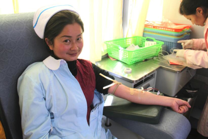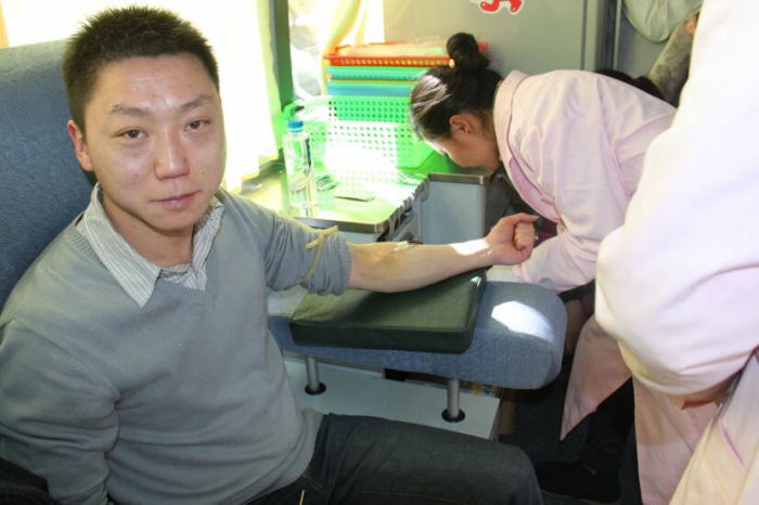 近日拉薩市血庫全線告急,血庫面臨血荒的危機。在得知這一緊急情況后王斌懂事長、劉瀟瀟總經(jīng)理立即組織阜康員工積極獻血,在阜康各位領導的帶領下,2013年1月30日他們來到阜康婦產(chǎn)兒童醫(yī)院血液中心采血點義務獻血。采血現(xiàn)場筆者看到在阜康婦產(chǎn)兒童醫(yī)院呂果梅副院長和拉薩大藥房何文秀店長的組織下大家排著整齊長隊等待獻血。筆者有幸采訪到了阜康醫(yī)院心腦血管分院內(nèi)科主任于永軍,據(jù)于主任介紹他已是多次參與獻血,阜康的員工都是很無私的,很多時候在面臨病人急需輸血而血站又缺血的情況下阜康員工就會自發(fā)組織在一起去血站為病人獻血,這種情況總是經(jīng)常出現(xiàn)。于主任告訴筆者自己獻血也是想起到一個帶頭的作用,很多人不愿獻血就是怕對身體有傷害,醫(yī)生護士積極獻血能告訴大家適當獻血不但對身體沒有害處還有利于身體健康。