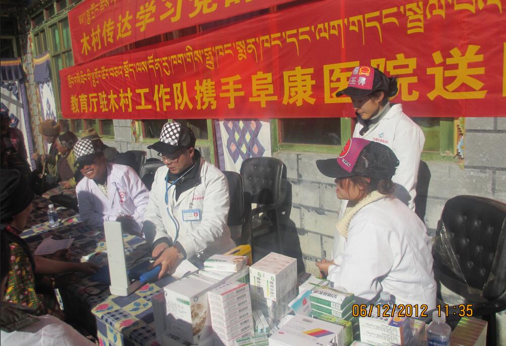 2012年12月5日,上午10點(diǎn),拉薩的太陽(yáng)高高地懸掛在天空,溫暖、舒適,我們四人在我院醫(yī)生王峰的帶領(lǐng)下,開著越野顛簸在高原崎嶇的路上。此行,帶著我們阜康人的溫暖、帶著我們的專業(yè)技術(shù)、帶著我們阜康醫(yī)院一萬(wàn)多元的藥品,去山南洛扎縣木村,為當(dāng)?shù)氐睦习傩账歪t(yī)送藥。
