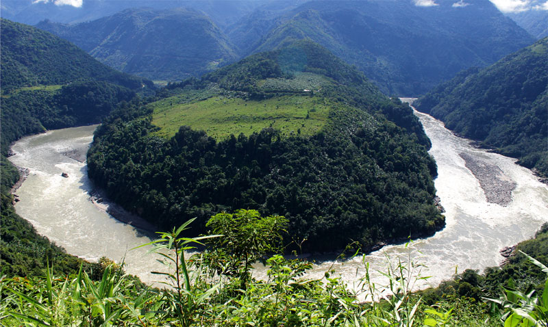 安頓好后,C陪我繞著村子走了走,一直走到一條滾滾蕩蕩的大江邊,終于受不住那股強流的寒風(fēng)才往回走?;氐叫:螅Y(jié)識了另一個走墨脫的單車旅行者,憨態(tài)可掬,被我稱作傻大個,這樣我們就湊上了一個墨脫之行的四人小隊伍。