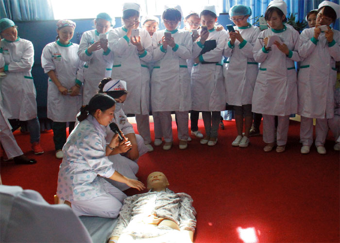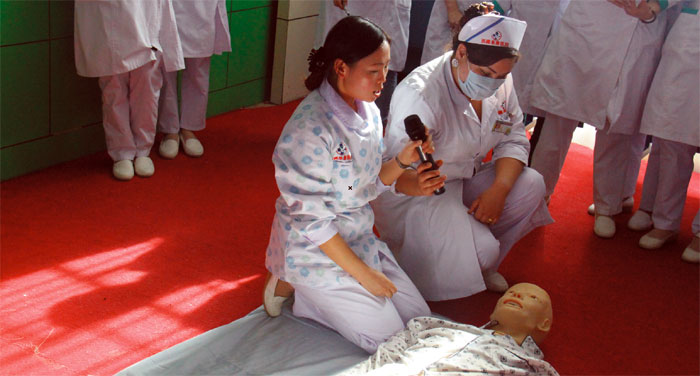 為了進一步規(guī)范我院職工心肺復蘇技能操作,同時通過模擬院內(nèi)突發(fā)急救事件,強化流程培訓,提高全院人員的急救意識,達到全員熟練掌握的目的, 2015年6月26日下午,我院組織舉辦心肺復蘇培訓班。全院60多名護理人員參加了培訓。急診科護士黃燕妮向參加培訓的護理人員詳細講解了心肺復蘇緊急救護的基本原則、方法與步驟,通過現(xiàn)場模擬演練,讓參訓人員對心肺復蘇的全過程有了更加深刻的理解。