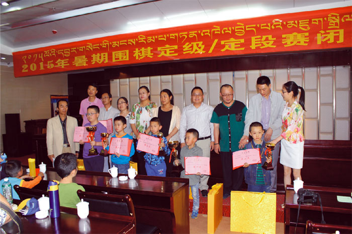 拉薩市2015年暑期圍棋定級/定段賽于7月26日正式拉開帷幕,比賽采取“循環(huán)積分制”,40名參賽選手經(jīng)過兩天的比拼,最終由彭子杰、任天澤、陳浩分別榮獲定級/升級賽前三名,常新昊、許蘇陽、肖墨愷分別榮獲定段/升段賽前三名。