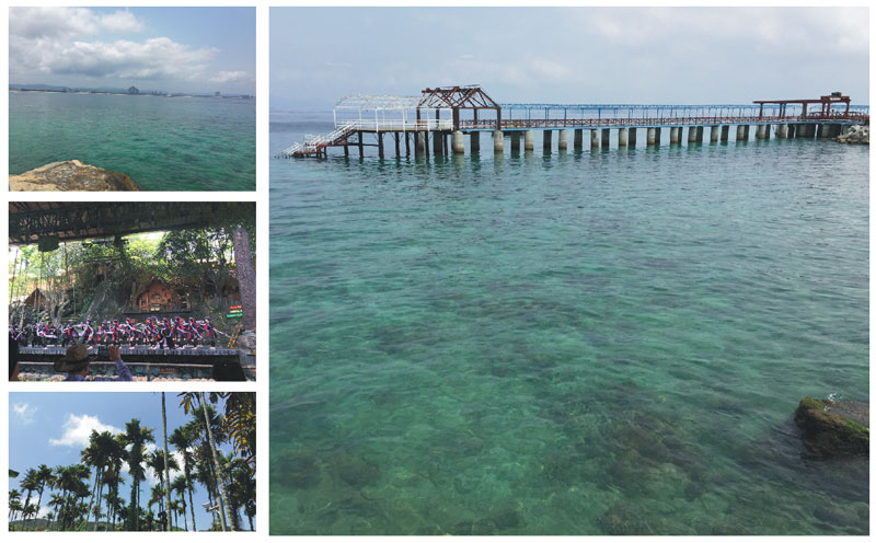 坐上機場大巴,車里另外的一對小情侶建議我們跟他們一起,于是到了大東海落腳,住在一個海邊客棧,老板告訴我們說是海景房,由于到的太晚,除了能聽到遠處漁船的轟鳴什么也看不見。趕路太累,簡單地收拾了行李睡覺。第二天一大早被熱醒,結果才發(fā)現(xiàn),海南的蚊子太熱情,我們兩個人身上都不同程度地被蚊子給臨幸了。不過旅行的好心情不會被蚊子給攪擾到,抹上防曬霜、戴好帽子……做好一切防護措施叫上隔壁的小情侶就出發(fā)了。